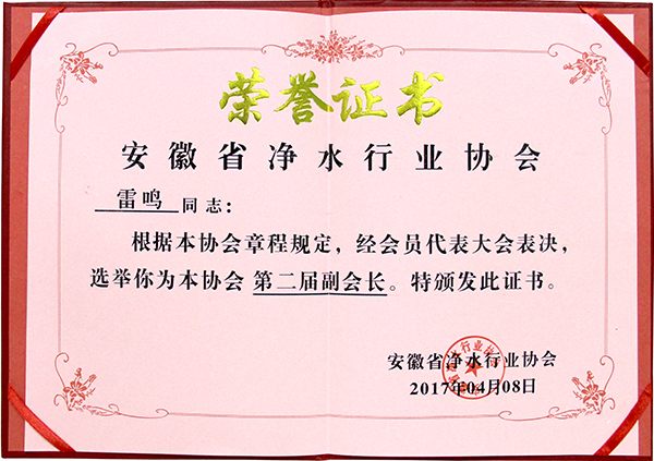 - 熱烈祝賀榮事達(dá)水工業(yè)公司董事長雷鳴連任安徽省凈水行業(yè)協(xié)會(huì)副會(huì)長