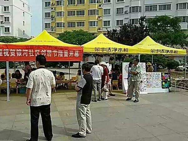 據(jù)悉,為了居民們在炎熱的夏日感受到一絲清涼,榮事達凈水機山東日照代理商和公司工作人員為居民們現(xiàn)場搭建帳篷,并且將凈水機搬到了活動現(xiàn)場,方便大家在參加活動的時候喝到免費安全的健康水。現(xiàn)制現(xiàn)飲的純凈水受到了居民們的一致好評。