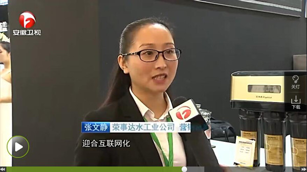 11月18日,第十屆中國(合肥)國際家用電器暨消費電子博覽會在合肥濱湖國際會展中心盛大開幕,代表國內外最先進的消費電子和智能家電集中亮相。安徽衛視現場采訪了此次家博會盛況,報道了采用智能化、人性化、互動化技術的典型產品,展示了家電行業采用高新技術走互聯網+發展道路的最新成果。榮事達水工業公司渠道開發部總監張文靜現場接受安徽衛視記者專訪,介紹了榮事達高端智能新品所采用的物聯網技術、產品卓越的過濾功能,以及智能控制功能對消費者使用體驗的提升。