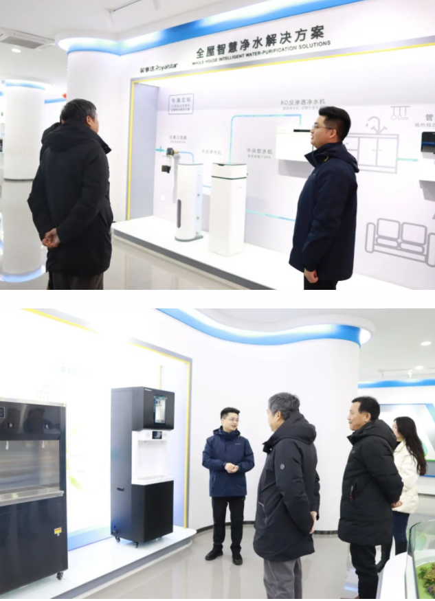 領(lǐng)導(dǎo)一行先后參觀了榮事達(dá)智能化生產(chǎn)車(chē)間和智慧水世界展廳,了解榮事達(dá)企業(yè)綜合實(shí)力及十大水處理系統(tǒng)具體發(fā)展?fàn)顩r,現(xiàn)場(chǎng)體驗(yàn)了企業(yè)最新研發(fā)定制產(chǎn)品與自主開(kāi)發(fā)的物聯(lián)網(wǎng)校園智慧管理系統(tǒng),并為榮事達(dá)行業(yè)領(lǐng)先的技術(shù)實(shí)力點(diǎn)贊。