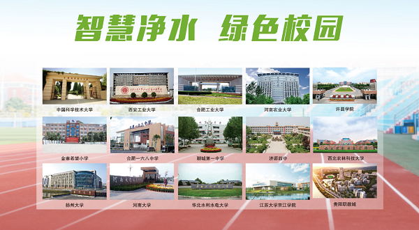 榮事達水工業先后承建了中國科學技術大學、河南大學、西北農林科技大學、江蘇省丹陽市第五中學等三千五百余所學校的直飲水工程,‘喝’護千萬師生飲水健康。
