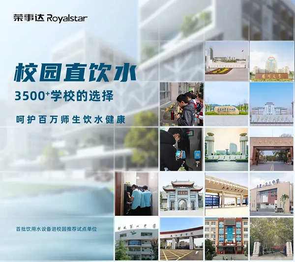 榮事達(dá)水工業(yè)公司始終關(guān)注師生的飲水安全,通過提供智能飲水服務(wù)方案,為師生創(chuàng)造一個(gè)健康、便捷的飲水環(huán)境。公司先后承建了中國科學(xué)技術(shù)大學(xué)、江蘇省丹陽市第五中學(xué)、新疆烏魯木齊五一農(nóng)場(chǎng)完全小學(xué)、宿松東北新城金色搖籃幼兒園等3500多所學(xué)校的直飲水工程,呵護(hù)百萬師生飲水健康。