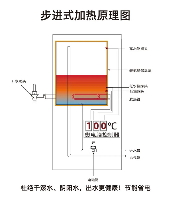 此次用于陜西省寶雞市鳳縣雙石鋪中學(xué)的RSD-60K步進(jìn)式開水器采用步進(jìn)式加熱技術(shù),多級過濾系統(tǒng)和七重保護(hù)功能等,杜絕千滾水、陰陽水,連續(xù)供應(yīng)開水,節(jié)能省電,出水更健康,使用安全放心。