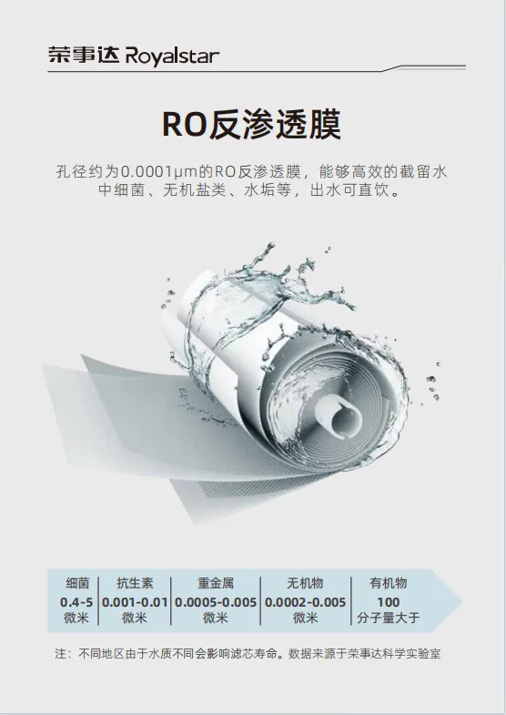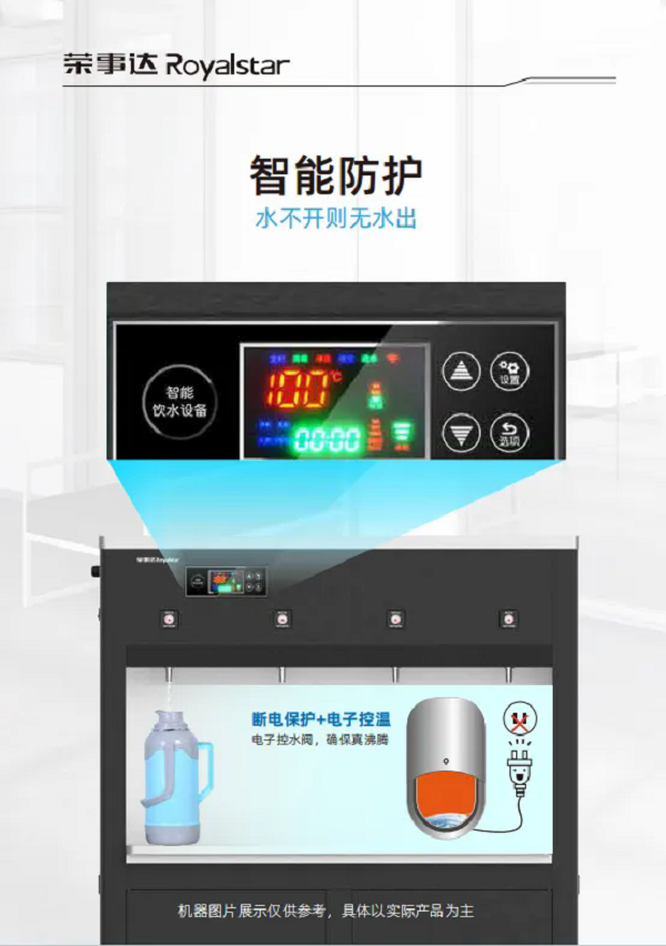 更為值得一提的是,榮事達校園直飲機采用了五級過濾與RO反滲透技術,能夠有效濾除水中的泥沙、鐵銹、重金屬、余氯等有害物質,確保水質干凈、安全。同時,設備還具備智能防護功能,如斷電保護、電子控溫等七重保護機制,充分保障了師生的使用安全。