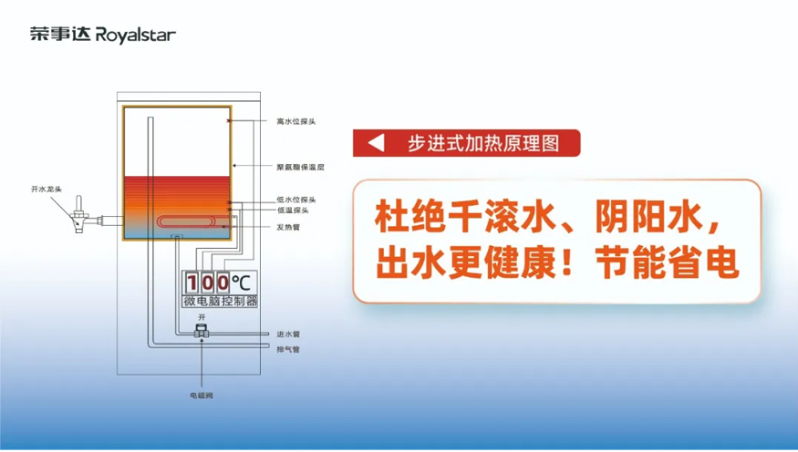 此次入駐的直飲水設備采用了五級過濾與RO反滲透技術,能夠有效濾除水中的泥沙、鐵銹、重金屬、余氯等有害物質,確保水質干凈、安全,出水達到直飲標準。同時,步進式加熱設計避免了“陰陽水”的產生,保證了連續供應開水的品質。