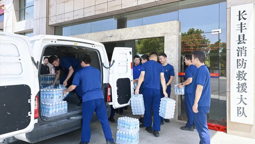 5月12日,榮事達(dá)水工業(yè)開(kāi)展公益行動(dòng),集團(tuán)行政總監(jiān)雷鵬、黨支部書記肖曉曉來(lái)到雙鳳經(jīng)開(kāi)區(qū)徐橋苑消防執(zhí)勤點(diǎn)、長(zhǎng)豐縣消防救援大隊(duì)捐贈(zèng)飲用水,致敬最美“火焰藍(lán)”,以實(shí)際行動(dòng)傳遞企業(yè)的溫暖與擔(dān)當(dāng)。