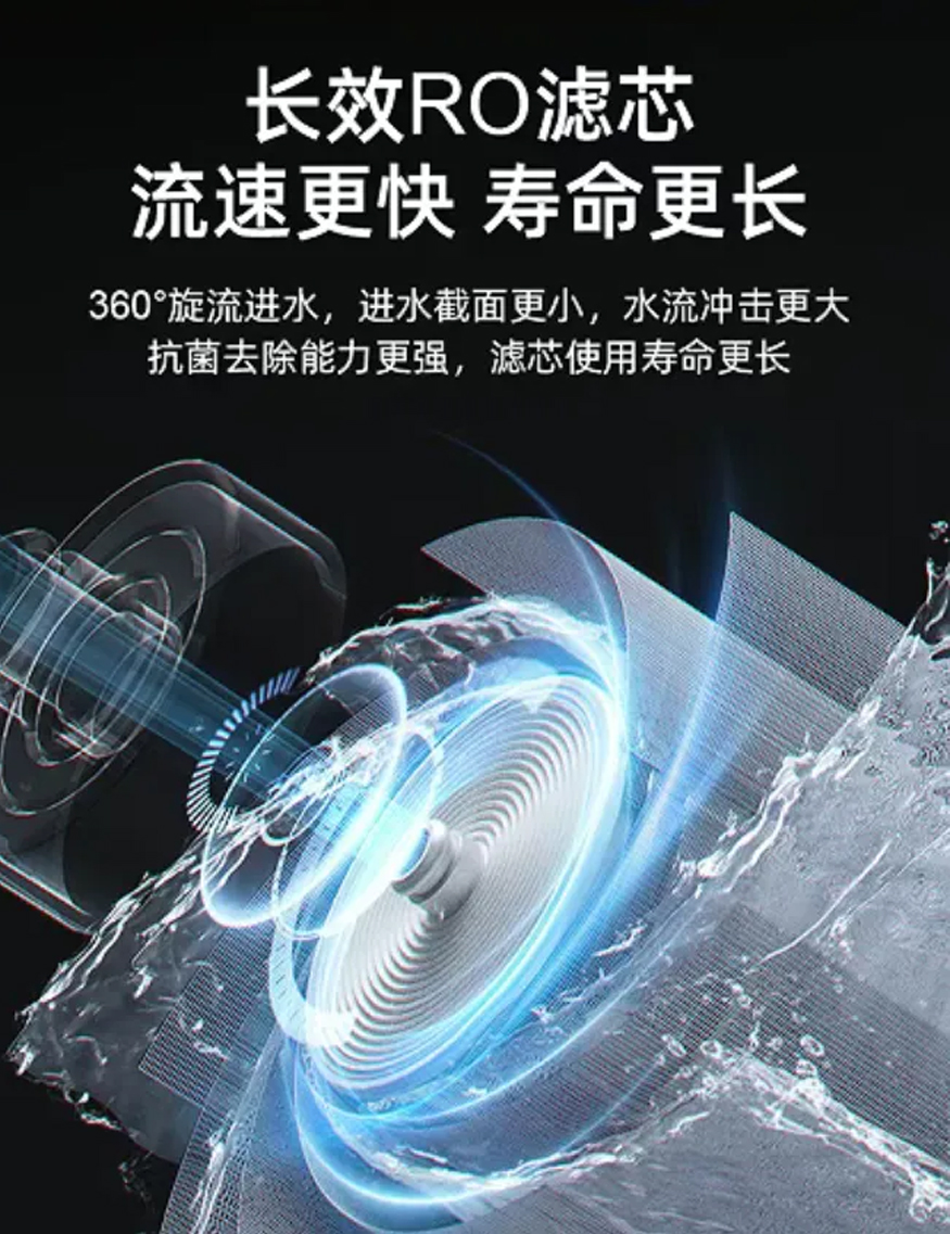核心采用3芯5級(jí)過濾、RO反滲透技術(shù),強(qiáng)力濾除重金屬、細(xì)菌等有害物質(zhì)。同時(shí),其 360° 旋流進(jìn)水設(shè)計(jì),可實(shí)現(xiàn)更快流速,延長使用壽命,且抗菌去除能力更強(qiáng)。貼心升級(jí)大孔徑出水龍頭,接滿一杯僅需數(shù)秒,告別涓涓細(xì)流的漫長等待。