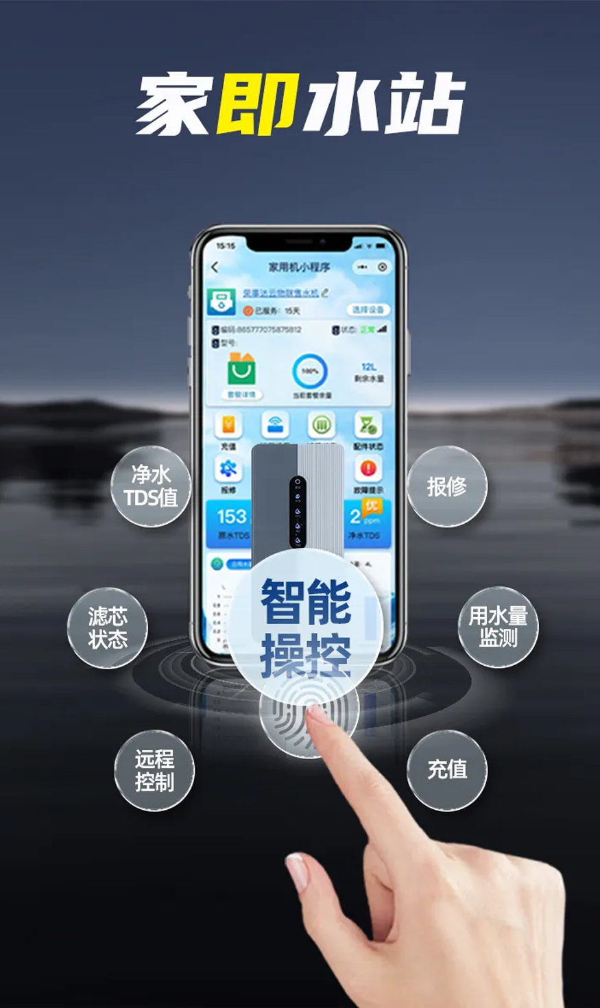 掃碼激活專屬小程序,水質(zhì)TDS值、濾芯壽命、用水量等關(guān)鍵數(shù)據(jù)實(shí)時(shí)躍然屏上。用戶抬眼即見安心,用水盡在掌握。