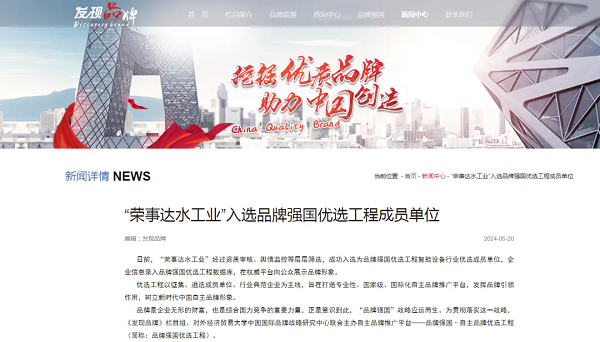 媒體聚焦 | “榮事達水工業(yè)”入選品牌強國優(yōu)選工程成員單位