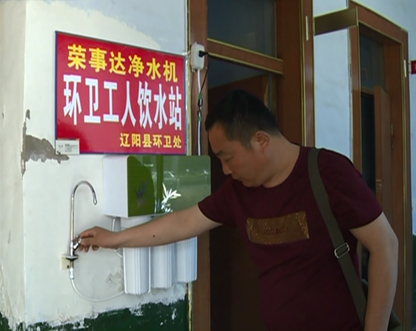 •     進入夏季后,天氣越來越熱,對于在馬路上工作的環衛工人來說飲水成了一大難題。大多環衛工人每天早上從家帶一兩瓶水,喝完后就接自來水管的生水喝,有時進路邊的店鋪要水還會被拒絕。為了解決環衛工人飲水這一難題,五月開始,遼寧省遼陽地區的榮事達凈水機代理商許廣彥在遼陽縣為環衛工人捐贈十臺凈水機,并在縣內主要街道設立了榮事達環衛工人飲水站,供環衛工人免費飲水。