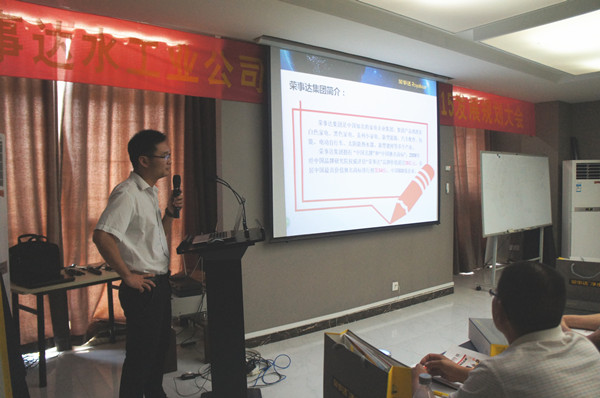 榮事達凈水機河南代理商張總在會議上分享了自己多年積累的經驗,從剛入行時的銷售困惑到愈發成熟的團隊建設,再從路演、城鄉聯動等活動形式到墻體廣告、店面展示等推廣方式,張總用實例告訴大家凈水行業的發展潛力,以及榮事達作為凈水行業中的知名品牌在消費者心中的信賴程度。在現場答疑環節,工作人員對與會人員提出的產品和售后服務等問題進行一一解答,消除了大家對凈水品牌和產品的疑慮。