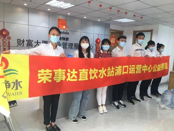 5月31日,榮事達(dá)直飲水站南京經(jīng)銷商王新玲向上海金地物業(yè)有限公司南京分公司捐贈(zèng)價(jià)值萬(wàn)余元的物資——榮事達(dá)直飲水水卡和榮事達(dá)飲水機(jī),保障全體物業(yè)工作人員在疫情防控期間也能喝上安全健康好水。
